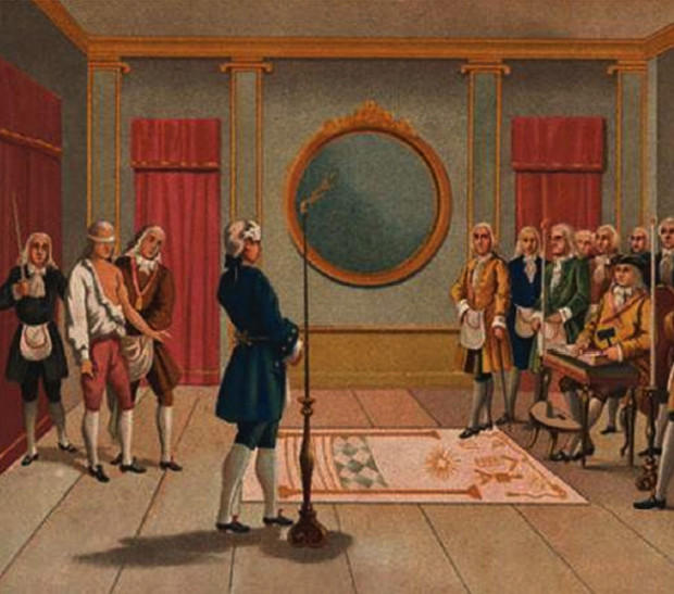 Посвящение в масонскую ложу. Акварель неизвестного английского художника. Фрагмент. Конец XVIII века.
