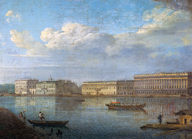 Вид Дворцовой набережной от Петропавловской крепости. Фрагмент. Фёдор Алексеев. 1794.