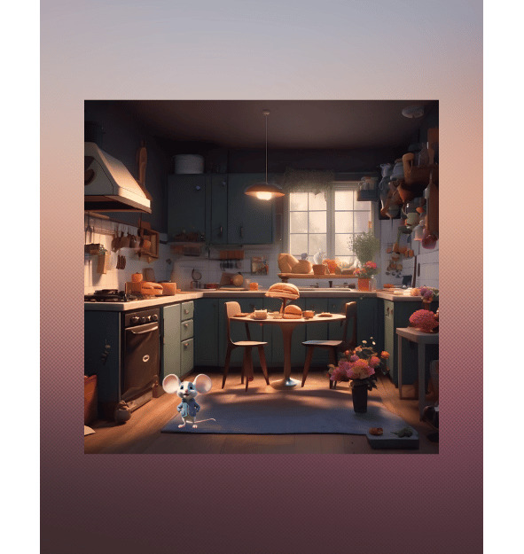 Эта история про мышонка Патрика, который жил на небольшой ферме на краю деревни. Он был очень маленьким, но ловким и быстрым мышонком. Однажды ночью, мышонок проходил мимо дома и почувствовал запах свежих булочек. Свет в доме не горел, значит все уже спали, решил он. Мышонок еле пролез через узкую щель между полом и дверью, посмотрел по сторонам, чтобы убедиться, что в кухне точно никого нет. Посреди кухни стоял большой стол, на нем лежала прозрачная хлебница, рядом с ней стояла корзинка, а в ней лежали булочки, накрытые полотенцем. «Как же залезть на тот стол?» – мышонок стоял и про себя размышлял. Осмотрев кухню, он понял, что можно использовать ветку у деревца, стоящего на полу недалеко от стола, как катапульту.