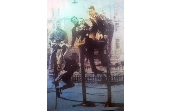 Автор (слева), Володя и другие ребята на турнике во дворе