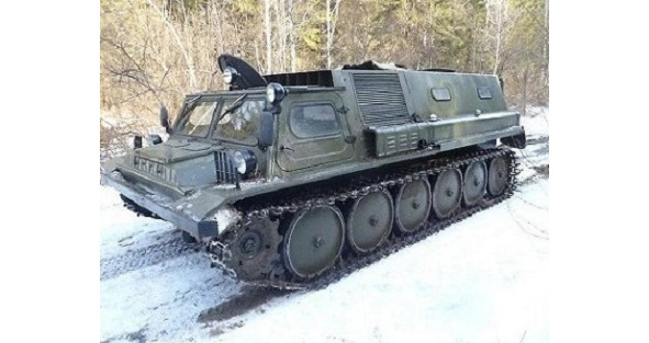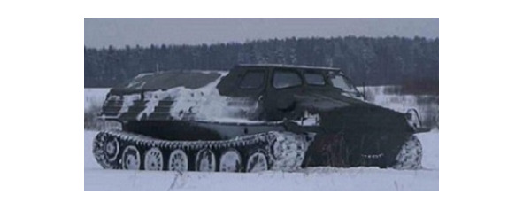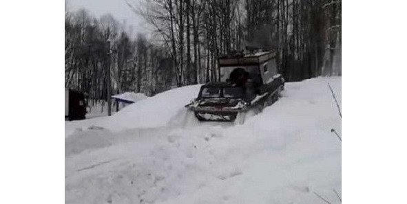 Вездеход стоял на склоне на бревнах (чтобы траки не примерзли к земле) и на тормозах. Сними с тормозов и он покатится вниз и заведется…