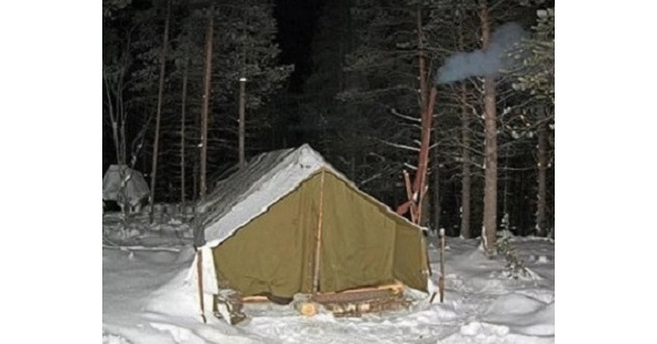Мы легко расчистили от снега место для палатки, установили печку и рацию, приготовили на печке поесть, поужинали и легли спать.