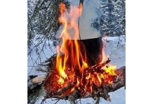 А с утра, позавтракав, принялись за расконсервацию вездехода. Она заключалась в заготовке большого количества горячей воды для пролития через радиатор и разогрева мотора. Для этого у нас была большая бочка из-под бензина. Мы вырубили днище, набили бочку снегом, обложили корягами и толстыми сухими сучьями и подожгли их.