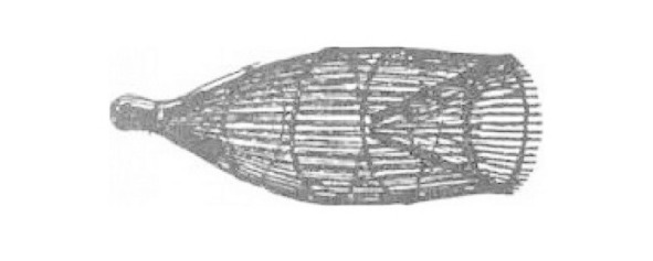 Нарезав метровых прутьев, толщиной с палец, и связав их у основания, вставил три прута-кольца – малое у основания, пошире – в средней части, и крупное – в широкой части. В широкую часть вставил небольшой, так же устроенный, плетеный из лозы конус. Установив «морду», я аккуратно закрыл домик мхом и ушел к палатке. Вынырнув сбоку от моего сооружения, ондатра, по моим расчетам, ныряя обратно, должна была прыгнуть в середину лунки (прямо в широкое кольцо конуса), проскочить сужающуюся часть, а обратно выбраться ей должно мешать малое кольцо.