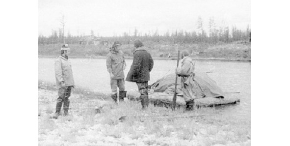 Скоро прилетел Осташкин с рабочими. Ему пришлось по дороге задержаться в аэропорту Якутска из-за невозможности вылета. Он даже заехал в Якутске на речной вокзал узнать о возможности выехать в Жиганск на теплоходе. Но тот уже ушел, а ближайший рейс был не скоро. Мы вылетели к месту полевых работ, где был оставленный геологами-разведчиками Амакинской экспедиции геологический поселок. Оставлен был в связи с окончанием работ.