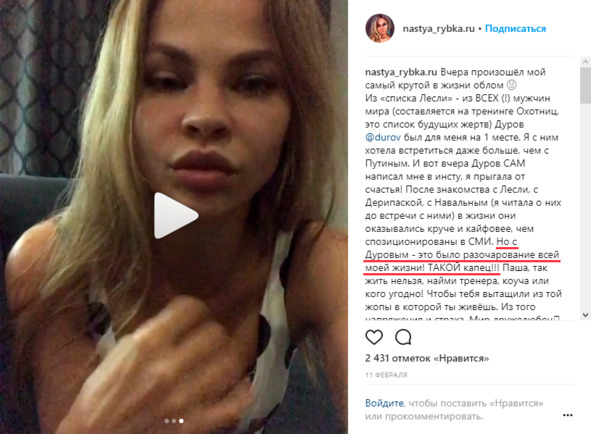 Павел Дуров не похож на известность в привычном для всех понимании, он разрушает стереотипы. Настя Рыбка – ученица тренера по соблазнению Алекса Лесли и автор книги «Дневник по соблазнению Миллиардера» – заявила, что мечтала встретиться с Дуровым еще больше, чем с Владимиром Путиным! После долгожданной встречи в своем блоге в Instagram Настя говорит, что разочаровалась в Дурове, обвиняет его в замкнутости, скрытности, даже советует пойти к своему коучу.