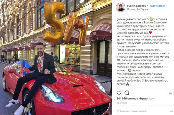 Гусейн попал в «Книгу рекордов России» за наибольшее количество просмотров публикации – целых 12 млн! Фото взято из источника @gusein.gasanov (Instagram)