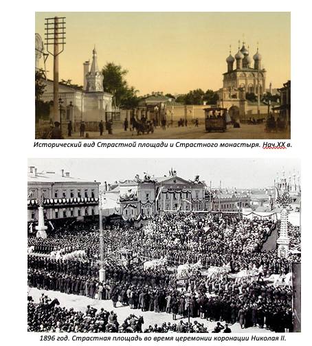 …Российские императоры строго следовали сложившейся традиции – Страстной монастырь часто посещался августейшими особами, а на Страстной площади проходили церемонии коронации императоров.