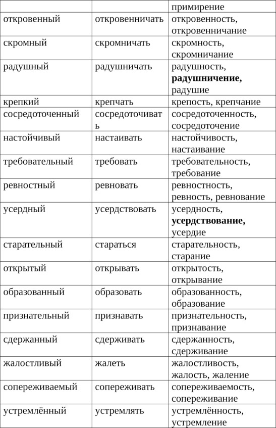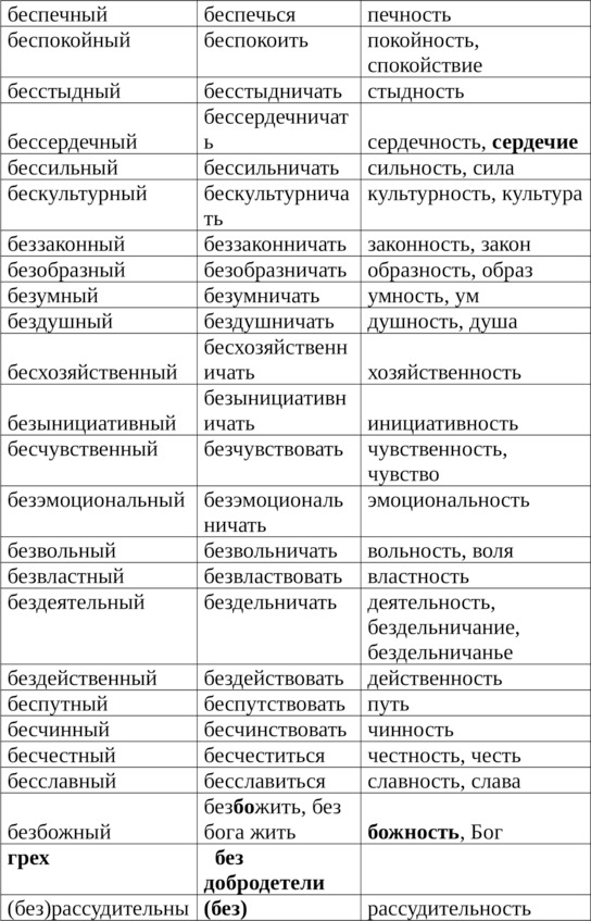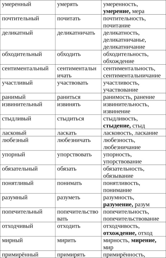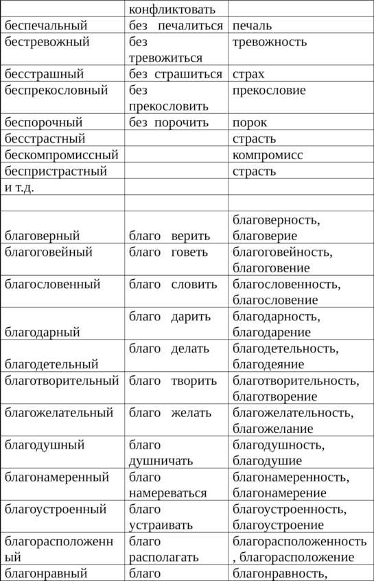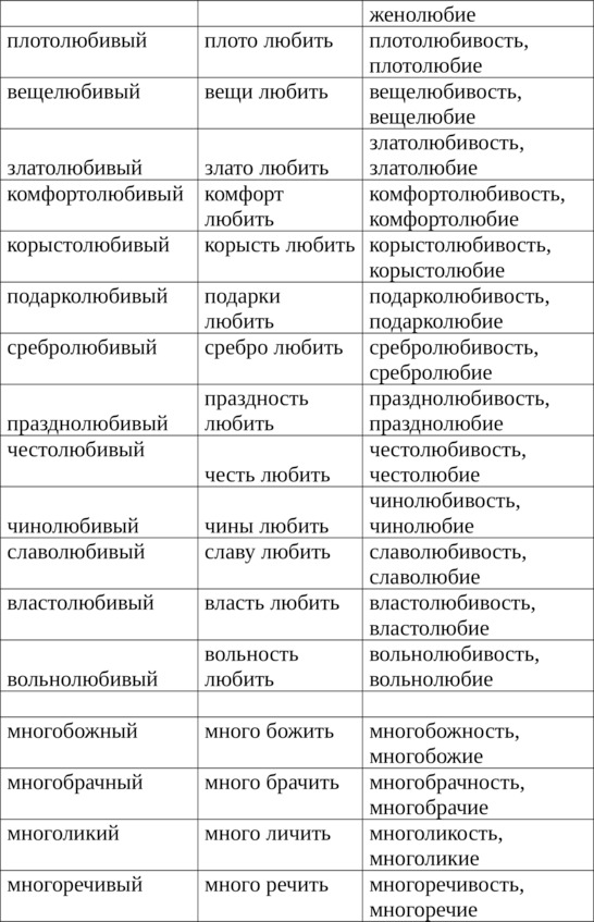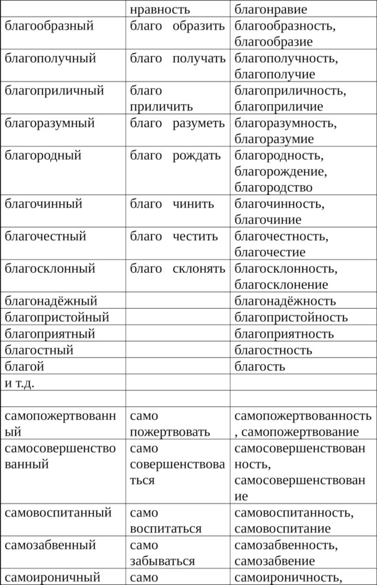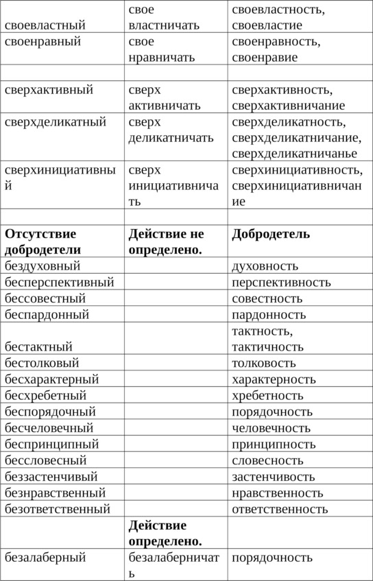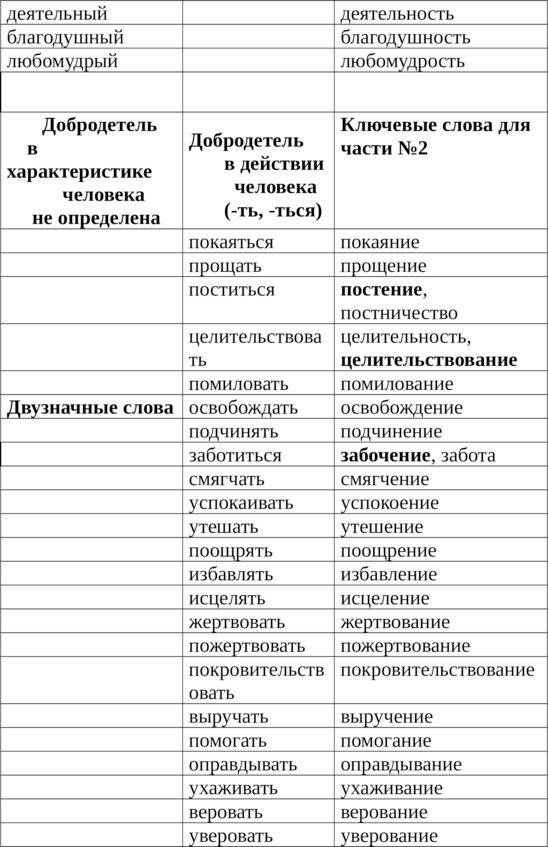 Слова определённых добродетелей часто не образуются от нейтральных слов, они порождение духовной сферы, они от Бога. Словообразовательные морфемы влияют на образование однозначной направленности нейтральных слов.