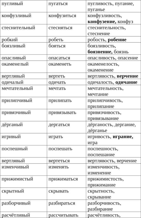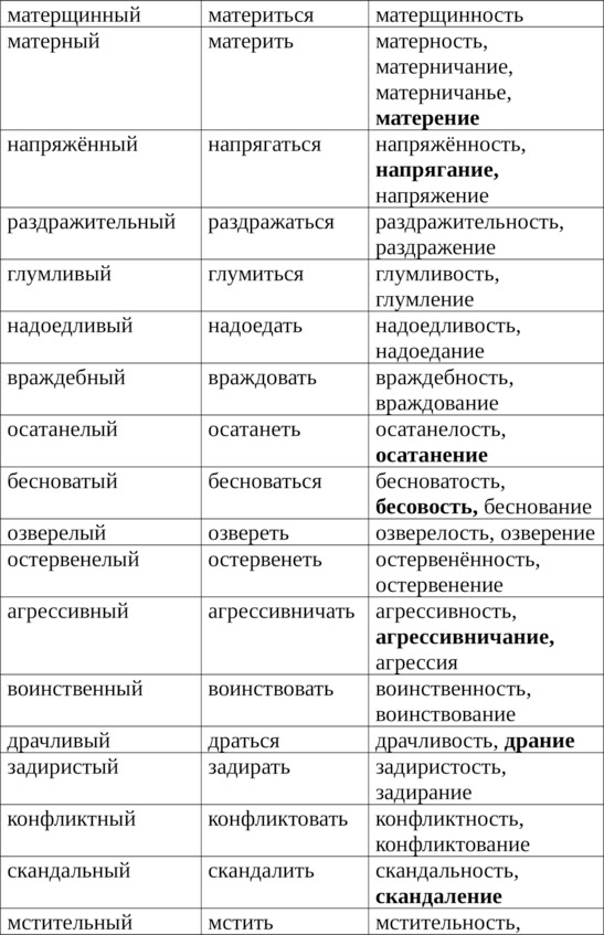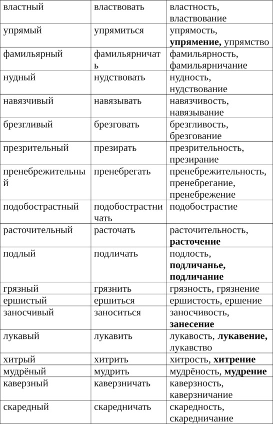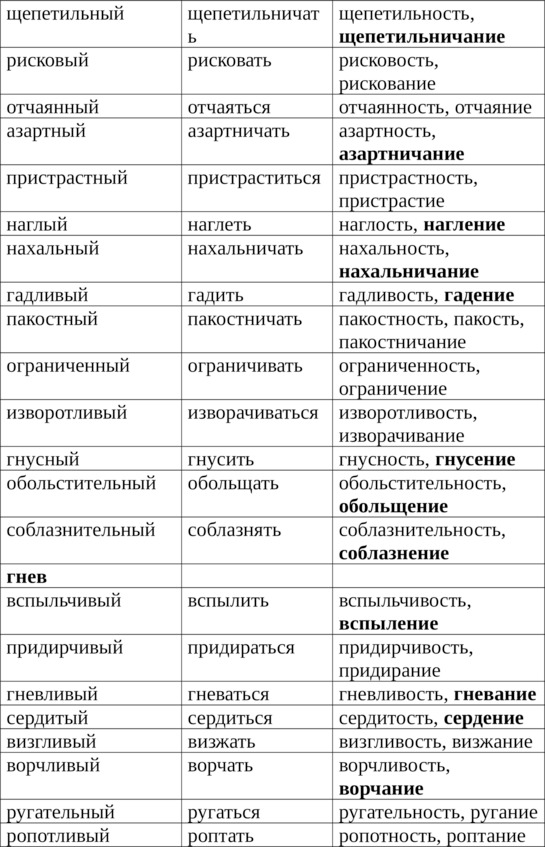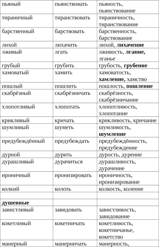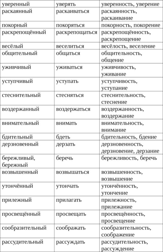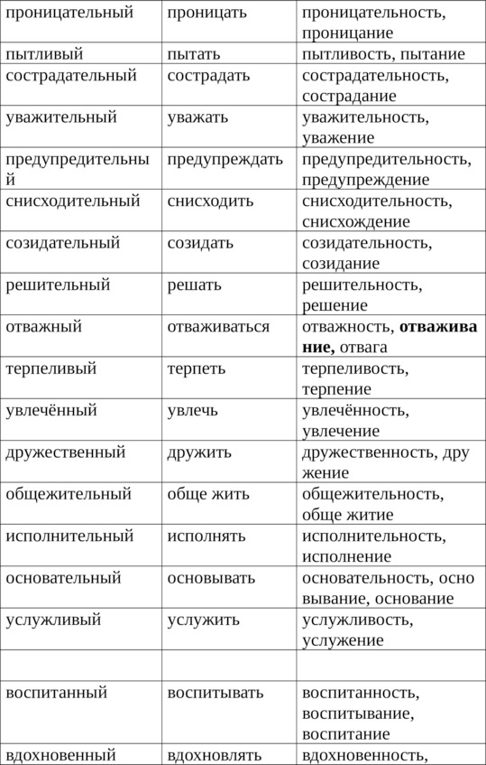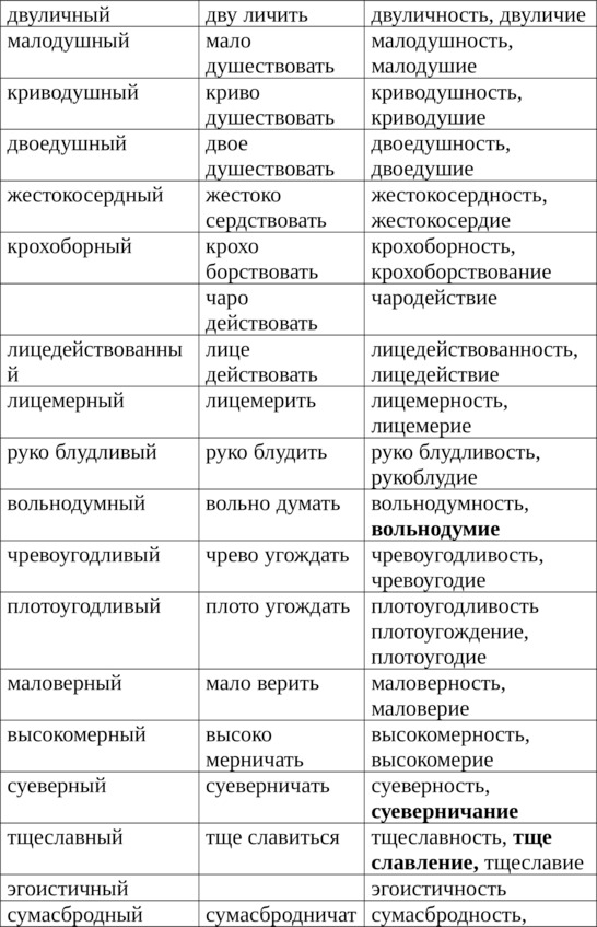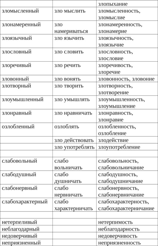 Слова определённых добродетелей часто не образуются от нейтральных слов, они порождение духовной сферы, они от Бога. Словообразовательные морфемы влияют на образование однозначной направленности нейтральных слов.