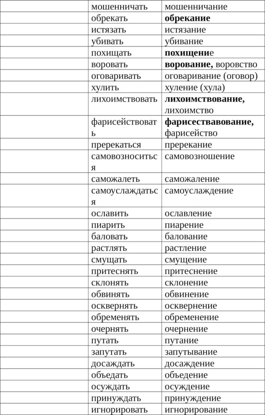 В начале списка приводится двузначное главное слово, которое при сочетании с другими словами принимает значение греха.