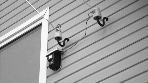 Если прокладываемый (изолированный) провод не обладает необходимой прочностью, его крепят к тросу, натянутому между столбом и домом.
