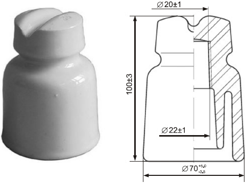 Изолятор линейный штыревой низковольтный фарфоровый типа ТФ-20 01 (рис. 1.6) предназначен для изоляции и крепления неизолированных проводов на воздушных линиях электропередач (ЛЭП), распределительных устройствах (РУ) электростанций, подстанций переменного тока напряжением до 1000 В, линий связи и радиотрансляционных сетей. Изолятор ТФ-20 01 является наиболее распространенным штыревым фарфоровым изолятором для линий 220В/380В с незащищенными проводами, устанавливается на траверсы серии ТН с помощью колпачков К-5 (КП-18).