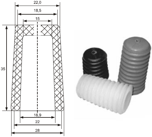 Для крепления штыревых изоляторов воздушных линий электропередач 0,4-10 кВ на стандартные металлоконструкции и крюки используют колпачки типа К или КП. Изоляторы НС-18А, ТФ-20 01, НП-18 и ТП-20 крепят с помощью колпачков марки К-5 (КП-18) с диаметром верхней части штырей 16 мм (рис. 1.7) [4].
