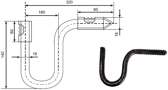 Рис. 1.9. Крюк КН-18 для крепления изоляторов ТФ-20 к деревянным опорам