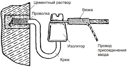 Рис. 1.11. Крепление фарфорового изолятора к бетонной стене дома