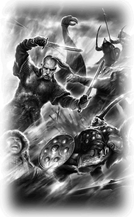 Яростные выкрики бойцов и вопли раненых, которых топтали ногами, смешались со звенящей металлом мелодией битвы; где-то русы свирепо рубили болгар большими секирами, вгрызаясь во вражескую фалангу, подобно хищнику, дорвавшемуся до жертвы; где-то болгары, ловко орудуя копьями, сдерживали русов, которые начинали топтаться на месте, не в силах продвинуться вперед.