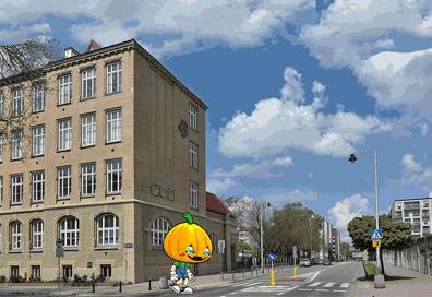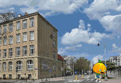 На первом этапе научимся передвигать единичный спрайт-изображение в заданном направлении. В качестве спрайт-изображения выберем тыквенного человечка, назовем его памкин (на английском pumpkin-тыква) . В качестве фона , на котором будет двигаться памкин, выберем пешеходный переход. Во-первых, нам надо найти и запомнить изображения памкина и фона в виде файлов в компьютере. Следует учесть, что все файлы изображений, которые используются в кодах библиотеки turtle должны иметь расширение gif. Обычно размер спрайт-изображения по горизонтали и вертикали не превышает 100-200 пикселей. Изображения фона, заполняющего экран, имеет размеры примерно 800-1200 пикселей по горизонтали и не более 750 пикселей по вертикали. Предположим, мы нашли нужное нам спрайт-изображение памкина, изображение фона и запомнили их в нужном формате(gif) в компьютере. Теперь, используя коды библиотеки turtle, создаем программу (скрипт) которая передвигает памкина вдоль горизонта на фоне изображения-улицы.