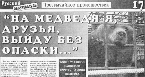 «Звериные» истории на страницах газет. На медведя я, друзья, выйду без опаски…