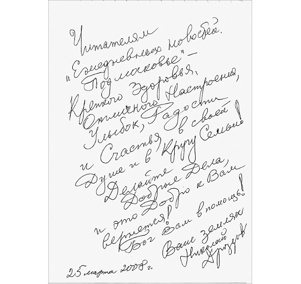 – Нет. В общем-то, можно об этом было не рассказывать, но она сама всем говорит, что при раздаче автографов не может написать чье-то имя или какое-то посвящение. Подпись идет автоматически.