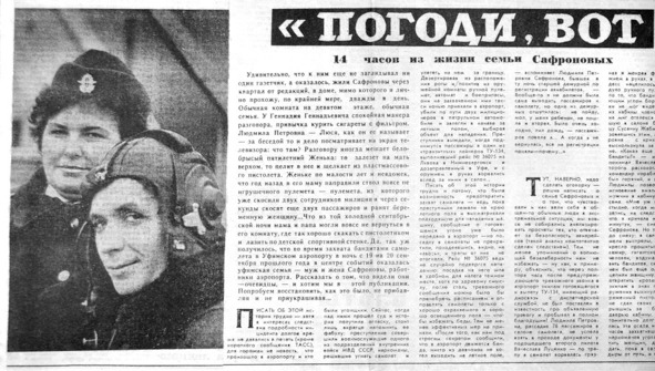 Да, та ночь была испытанием для многих – замерзшие и мокрые люди были на пределе нервов и сил. «Больше всего меня удивляло тогда, – скажет потом Геннадий Геннадьевич Сафронов, – что в захваченном салоне пассажиры сидели под дулом пулемета, а рядом – вроде бы спокойно – работал аэропорт, взлетали и садились другие самолеты. Это никак не укладывалось в голове, хотя и меня пару раз посылали – авиатехников не хватало – с других стоянок самолеты «вытолкать»… Я еще не знал, что Люся моя находится в кабине захваченного ТУ-134, мне даже мысль такая в голову не приходила… И вдруг в шесть утра, светать уже стало, один из сотрудников спрашивает: «Ну, что там Сафронову? Не выпустили еще?» Я всё понял. Представляете, что я в этот момент почувствовал! С той минуты я от захваченного самолета уже никуда не уходил…