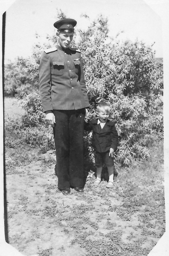 Маленький Витя Савельев (четыре годика) с отцом-офицером Алексеем Михайловичем. Крым, Джанкой, 1950 год. Фото из семейного альбома.
