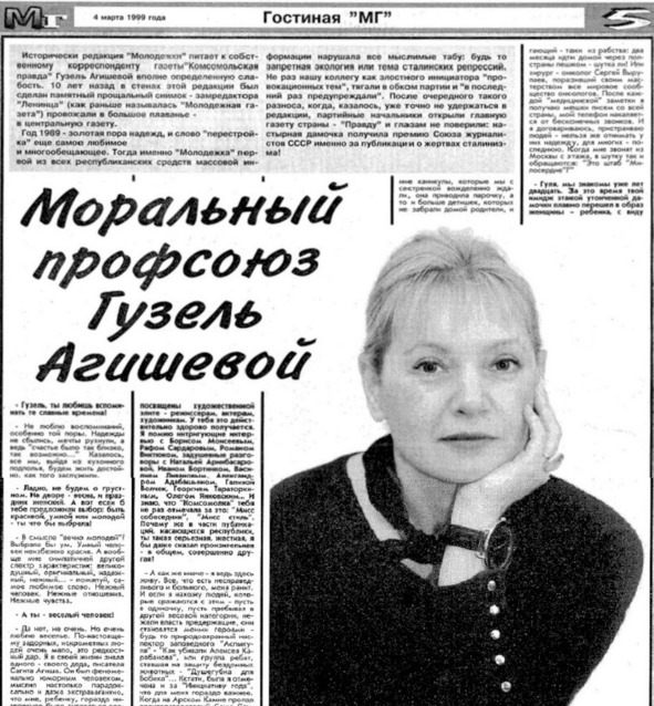 Исторически редакция «Молодежки» питает к собственному корреспонденту газеты «Комсомольская правда» Гузель Агишевой вполне определенную слабость. 10 лет назад в стенах этой редакции был сделан памятный прощальный снимок – замредактора «Ленинца» (как раньше называлась «Молодежная газета») провожали в большое плавание – в центральную газету.