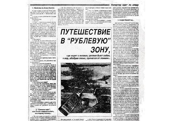 …Из Стерлитамака я уезжал хмурым весенним утром, так и не договорив с Дегтяревым о многих вещах. Там было многое, на что не хватило бы газетной страницы: о суде, который уже трижды уводил от тяжелой уголовной статьи сынка местного строительного босса, о «мафиозниках», строивших себе особняки, о директорах, бросавших миллионы на загранпоездки, не выплачивая рабочим зарплату… Мела легкая поземка, вылизывая мерзлый асфальт, молодой лейтенант милиции, подвозивший меня на «Волге» до КПМ ГАИ, кивнув на говорившую рацию, похвастал: