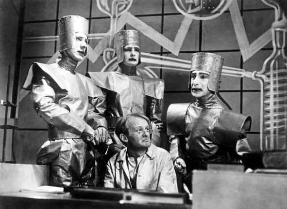 Кадр из спектакля по пьесе R.U.R. («Россумские универсальные роботы»), написанной Карелом Чапеком в 1920 году.