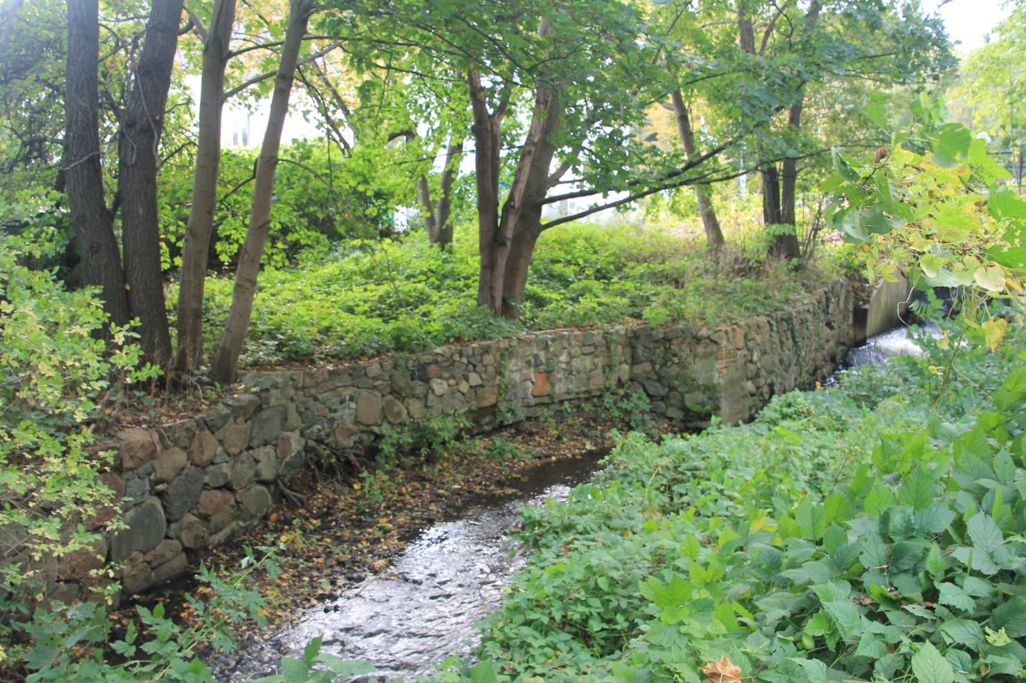 Der in den Teich mündende Katzenbach (Svetlogorka) wurde 2018 in die Leitung gesteckt. Denn die Wohnbebauung musste erweitert werden.