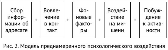При преднамеренном воздействии в общую модель целесообразно добавить блок «Сбор информации об адресате». Предварительно собранная информация позволяет инициатору быть более успешным в воздействии на адресата: при убеждении его, скрытом управлении им, манипулировании, внушении, обращении с просьбой, игнорировании, принуждении и агрессии. Собранная информация позволяет более эффективно вовлекать адресата в контакт, привлекать персонально-ориентированные фоновые факторы, выбирать мишени воздействия на адресата и средства побуждения его к активности в желательном для инициатора направлении.