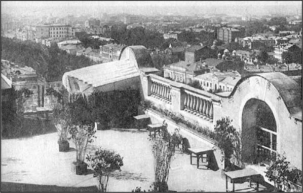 Впрочем, и сам дом, и его уникальная крыша тоже были по-своему привлекательны. Особенно в период НЭПа, когда в помещении на десятом этаже, вместо советского общепита, начал работу частный ресторанчик с увеселительными программами и опять же киносеансами поздним вечером, причём репертуар имел оттенок отчётливо ностальгический. Нетрудно представить, как было приятно сидеть у парапета душным летним днём, потягивая холодное пиво (отпускавшееся здесь не только членам профсоюза, но и простым смертным), или в сгущающихся сумерках, распивая с приятелями напитки покрепче.