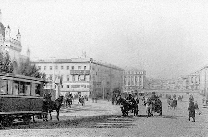 Вид на Челышевскую гостиницу с Театрального проезда. Фото 1880-х годов