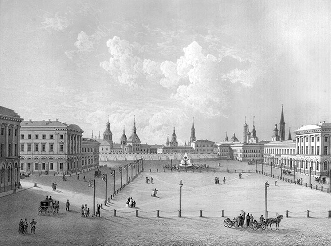 Театральная площадь. Литография Л. Ж. Жакотте и Ш. К. Башелье с оригинала Бронина, фигуры Ж. А. Дюруи