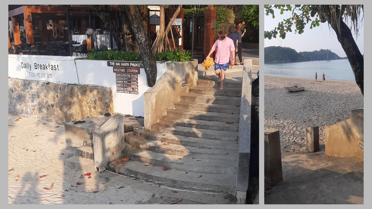 Фотография 1. Боковые сходни, ведущие на пляж Найхарн. Фотографиия 2. Другой ракурс со сходень, пляж Найхарн.