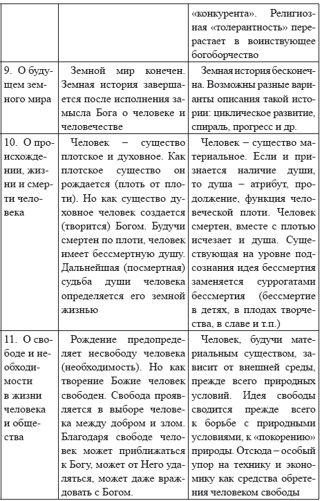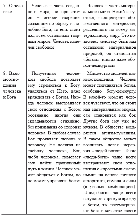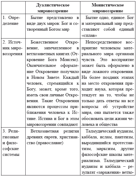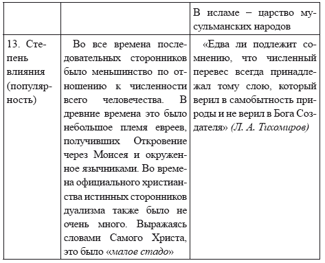 Основные признаки (характеристики) двух основных религиозно-философских представлений о мире (бытии) по Л. А. Тихомирову