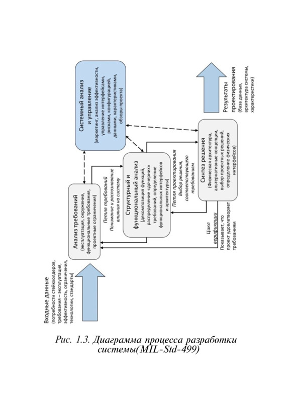 Описание процессов жизненного цикла включает стандартные блоки компонентов. Каждый процесс состоит из входа, действия и выхода, поддержанных функциями управления и обеспечения. Процесс разработки в системной инженерии можно представить в виде нескольких взаимосвязанных итерационных петель (рис. 1.3).
