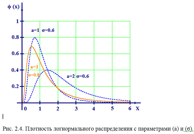 Характерной особенностью логнормального распределения является зависимость дисперсии от математического ожидания, таким образом, что коэффициент вариации остается близким к единице (рис. 2.4.).