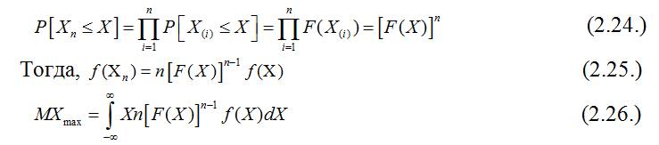Последнее выражение позволяет оценить Xmax если есть информация о распределении генеральной совокупности. Для нормальной или логнормальной функции распределения, оценки математических ожиданий i – х порядковых статистик могут быть выполнены только численным интегрированием на ЭВМ.