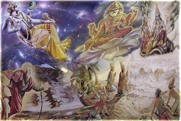 Господь Брахма, Господь Шива – полубоги неотделимые и неотличимые от Верховного Господа, являясь частью целого. Веды объясняют это абсолютное единство тем, что Верховный Господь проявляется как Господь Ананта – Шеша, чтобы поддержать материальное творение, а затем проявляет Себя Господом Брахмой, чтобы сотворить эту Вселенную. Разрушение же материального космоса осуществляется другой экспансией Верховного Господа – Господом Шивой [2, с. 547].