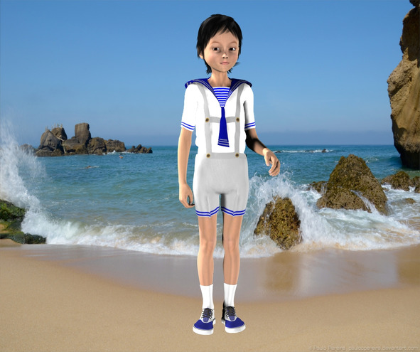– Что? А! Да вот, есть один, на матросский похожий. Вон, смотри, на стене фотка есть, где я в этом костюме на море.