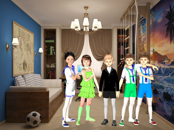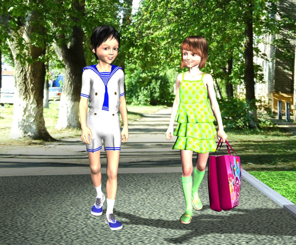 Действительно, было чему удивиться! В комнате на диване сидели братья Савушкины и чинно листали альбом с семейными фотографиями. Женька и Света застыли на пороге комнаты – оба брата были абсолютно в таких же костюмах, как и Женька! То есть, полностью! Самое смешное, что даже белые колготки на обоих были точно такие же, какие были на Женьке (Светка таки заставила его в подъезде снова переодеться), с такими же синими парусниками!