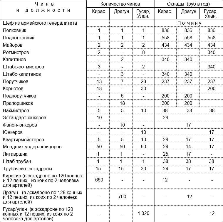 Рисунок 3–16. Штаты полков кавалерии Русской армии 1802 года
