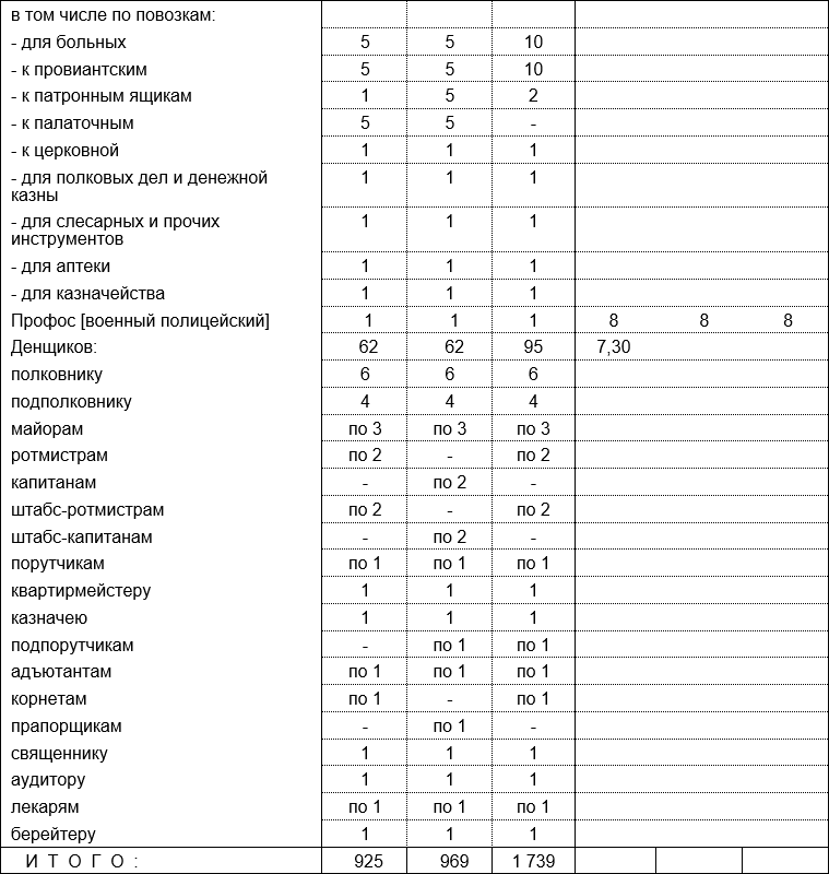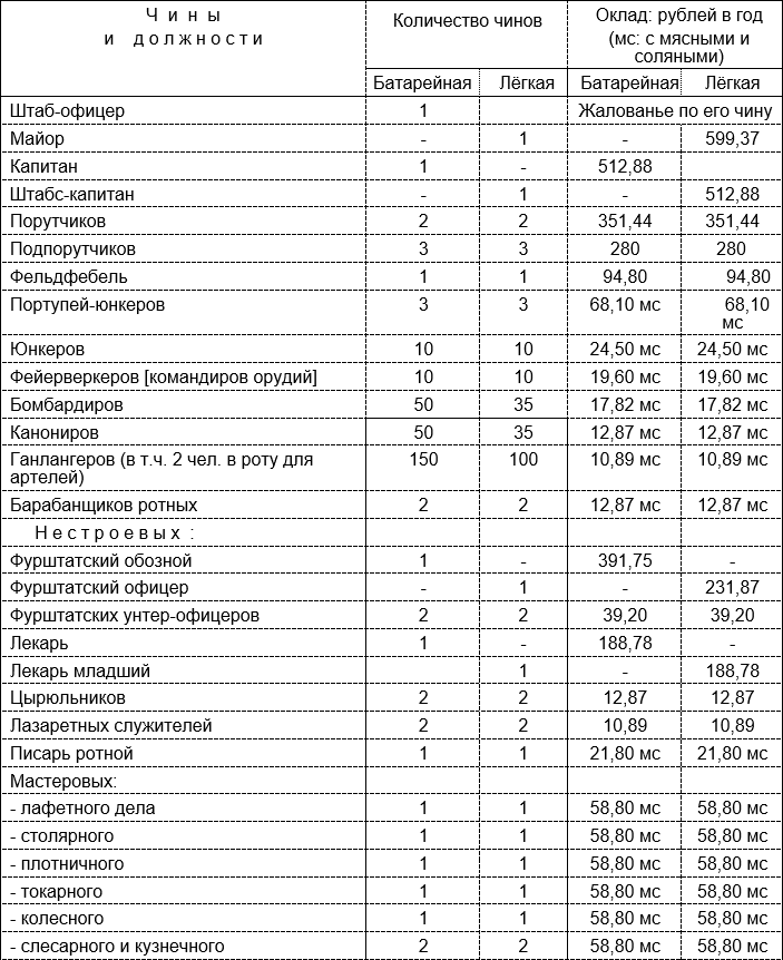 Рисунок 3–21. Штаты пеших артиллерийских рот Русской армии 1803 года
