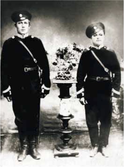 Этой фотографии почти сто лет. На ней, слева, запечатлён мой дедушка по материнской линии – Швецов Ефим Никитич – забайкальский казак, георгиевский кавалер, большевик, красный партизан, хлебопашец. Он, к сожалению, не дожил до моего рождения, но я много о нём знаю со слов бабушки и мамы, а также бережно храню копию этой сохранённой ими фотографии.