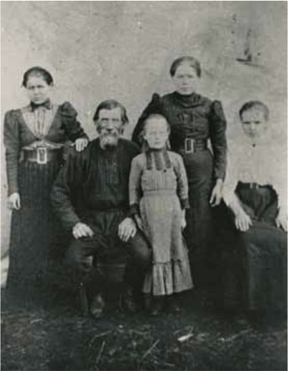 А на другой фотографии, примерно той же давности, крайняя слева – моя бабушка Швецова Серафима Никифоровна с маленькой дочкой, будущей моей тётей Ирой, свёкром – моим прадедушкой Никитой Клеонидовичем, женой брата мужа Миланьей Кузьмовной и её сестрой Матрёной. Она в те далёкие годы спрятала дедушкины георгиевские кресты, как наиболее ценные в доме вещи, в один из туесков в кладовке. Японские солдаты, воевавшие на стороне белой армии и зашедшие в их дом, вместе с туесками со сметаной и другими продуктами унесли, к сожалению, и этот туесок с боевыми наградами.