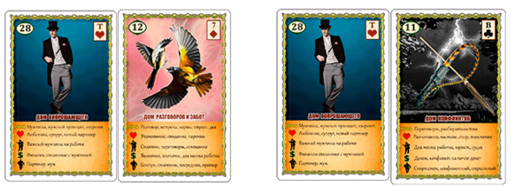 Каждая карта из колоды Ленорман может давать характеристику личности, описывать поведение и даже внешний вид человека. Однако в любом раскладе, самого вопрошающего или главного персонажа в ситуации, всегда будет обозначать персональная карта Мужчина или Женщина. Поэтому я хоть и даю в этой книге характеристики и отличительные черты поведения человека в соответствии с каждой изучаемой картой, всё это следует применять в паре с персональной картой.
