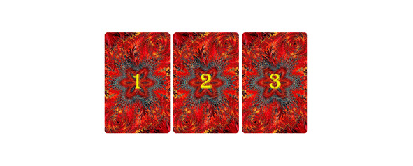 В зависимости от ваших предпочтений вы можете выбрать один из нескольких вариантов расклада из трёх карт. Первый из них, самый распространённый, представляет собой классические позиции в которых первая карта показывает прошлое, средняя карта говорит о настоящем, а третья предсказывает развитие ситуации в будущем. Однако выкладывать такую триаду можно двумя способами. Один показан на рис.1. Он называется прямым, поскольку значения позиций совпадают с направлением выкладки, всё идёт слева направо, от прошлого к будущему.