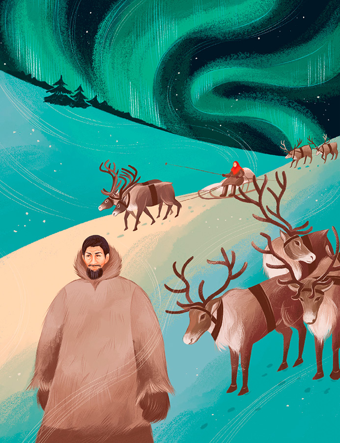 И чум, и яранга удобны не только потому, что выдерживают ветер и не заносятся снегом. Их можно легко разобрать, перевезти и собрать в любом другом месте, что важно для кочующих народов. Это не значит, что у жителей Севера совсем не было постоянного жилища – были и землянки, и дома (а сейчас на Севере есть и большие города). Тип жилья зависит от того, чем люди занимаются. Большинство северных народов разводили (и продолжают разводить сейчас) оленей. В тундре мало растительности, поэтому, чтобы животным было что есть, приходилось регулярно искать новые пастбища, то есть кочевать.