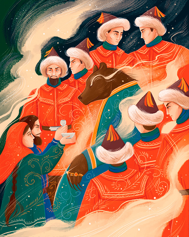 Представление заканчивается, и тут ты понимаешь, почему перед охотой папа просит удачи у семи богатырей. Их деревянные фигурки пугали тебя в детстве, и ты старался пробежать мимо них побыстрее. Но папа говорил, что они помогают ему – ведь они покровители твоего предка, а значит, твоего рода и твои тоже!